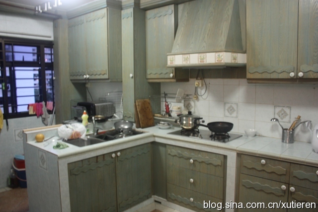 厨房则看起来十分宽敞-不过主人介绍说他们很少在家做饭,因为楼下的小贩中心里随时能买到既便宜又可口的饭菜。