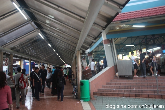 从地铁站出来,一条长长的遮雨棚把人们直接送往公共巴士总站-右侧的建筑是一个面积巨大的小贩中心,大体上能够满足人们基本的生活需求-既可以在此吃饭休息也可以方便地购买到日常所需。