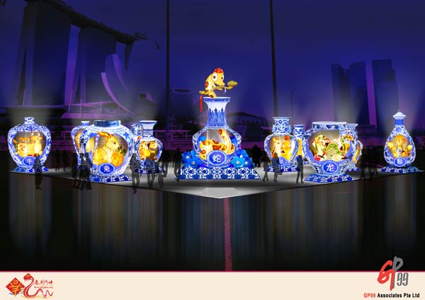 “春到河畔”的灯展一直都受到观众喜爱。除了必不可少的十二生肖灯组“瓶瓶安安”,今年观众将有幸欣赏到历年来设计最庞大的灯组。主办单位特别利用荷花及新加坡国花“卓锦万代兰”,以立体3D的方式,生动地呈现“荷塘月色”和“国色天香”为主题的两幅中式巨型屏风灯饰。