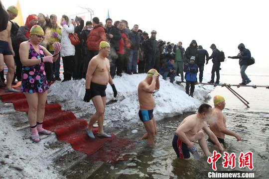 12月13日,黄法第三次飞到松花江边。“能参加这次冬泳比赛,我很开心。”黄法说。对冬泳“上瘾”的他,已经留恋上松花江,明年冬天,他会再飞到吉林市体验冬泳乐趣。(记者 苍雁)