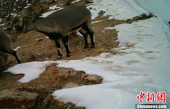 图为拍摄到的岩羊。 图片来源:甘肃盐池湾保护局