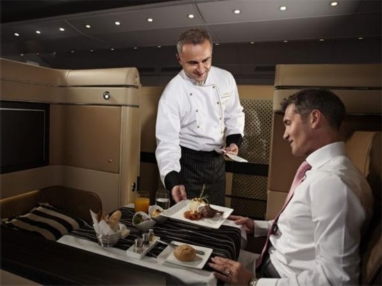 在从纽约飞往阿布扎比市(阿拉伯联合酋长国首都)的航线上,阿提哈德航空的钻石头等舱配有私人厨师,在这里,只有你想不到的,没有你吃不到的。
