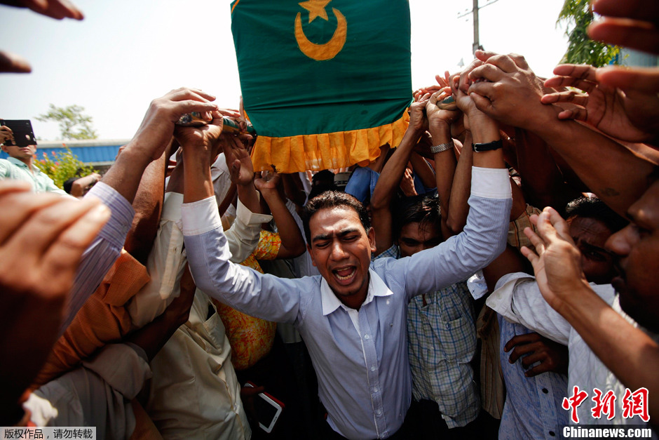 当地时间2013年4月2日,缅甸仰光,人们在为火灾中丧生学生举行的葬礼上抬棺。缅甸仰光一穆斯林学校当日凌晨发生一起火灾,导致13名住宿生死亡。