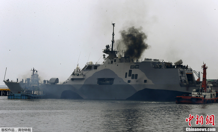 当地时间4月9日,美国海军“自由”号高速濒海战斗舰停靠菲律宾马尼拉南港。这是“自由”号濒海战斗舰首次停靠东南亚港口访问。目前,美国与菲律宾正在菲律宾北部的吕宋岛多地举行“肩并肩”联合军事演习,美菲双方超过8000名官兵参与。美国大使馆强调,“自由”号濒海战斗舰此次访菲与“肩并肩”联合军演无关。