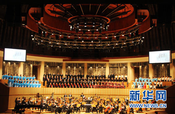 4月11日,在新加坡,新加坡当地合唱团演唱《客家之歌》。当日,厦门爱乐乐团在新加坡滨海湾艺术中心演出,曲目包括《土楼回响》交响诗篇、《意大利随想曲》、《梁山伯与祝英台》、《茉莉花》等。 本网记者 胡隽欣 摄