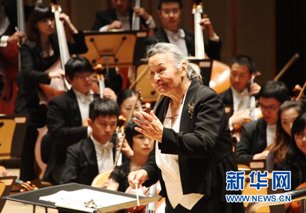 4月11日,在新加坡,著名指挥家郑小瑛在指挥乐队。当日,厦门爱乐乐团在新加坡滨海湾艺术中心演出,曲目包括《土楼回响》交响诗篇、《意大利随想曲》、《梁山伯与祝英台》、《茉莉花》等。 本网记者 胡隽欣 摄