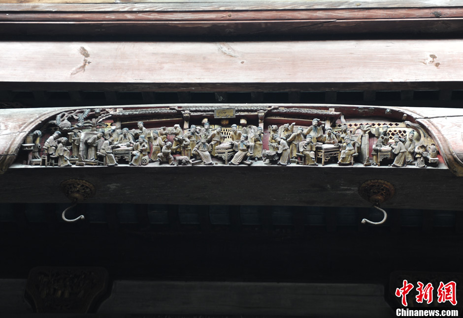 图为宏村建筑上的雕梁。中新网记者 李美多 摄
