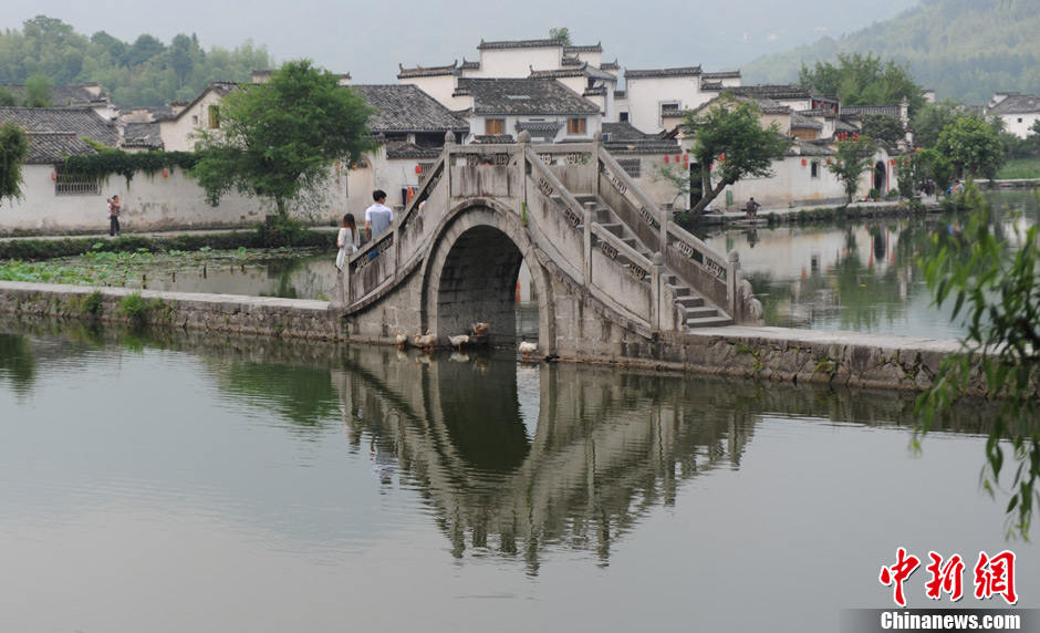 图为宏村南湖上的画桥。中新网记者 李美多 摄