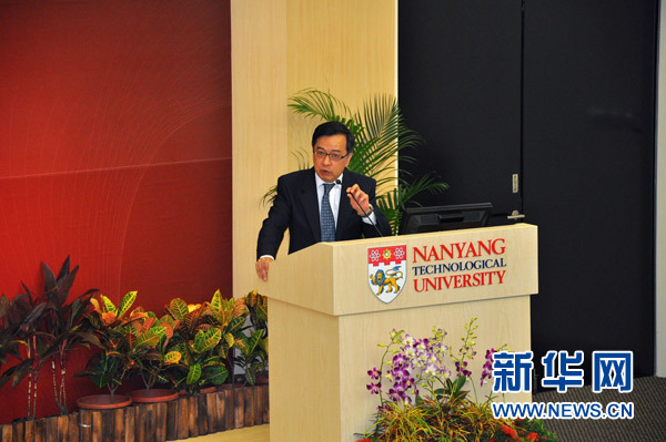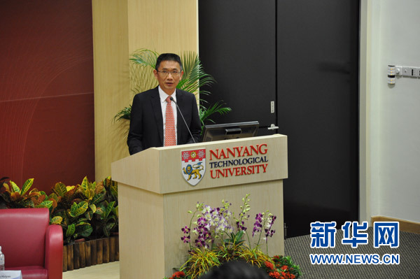 6月3日,第三届国际人才发展论坛在新加坡召开。图为南洋理工大学中国事务处主任、公共管理研究生院院长吴伟在发表演讲。