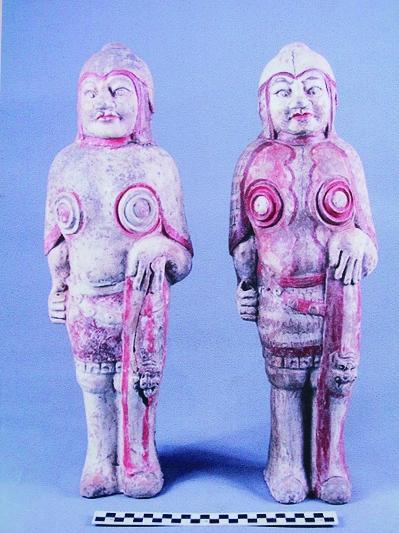 北齐赵信墓出土的武士釉彩陶俑。(资料照片)