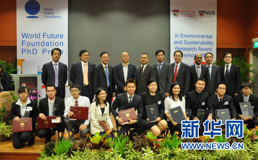 新华网新加坡7月12日讯 7月11日,新加坡国立大学和南洋理工大学的10名博士生获得了世界未来基金会所提供的总值为十万美元的奖金。其中谢衍灵博士和郑毓洁博士分别因哩离子电池和珊瑚礁方面的研究受到了关注,其他获奖者也均对支持可持续发展的研究做出了贡献。在颁奖仪式上,两所大学的教授以及基金会的创办者表达了他们对于这些年轻学者的赞赏。