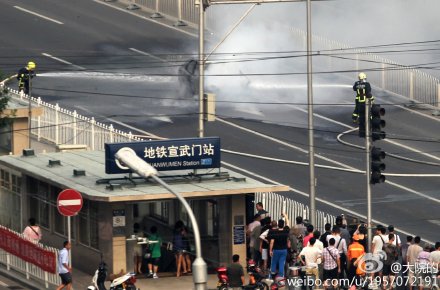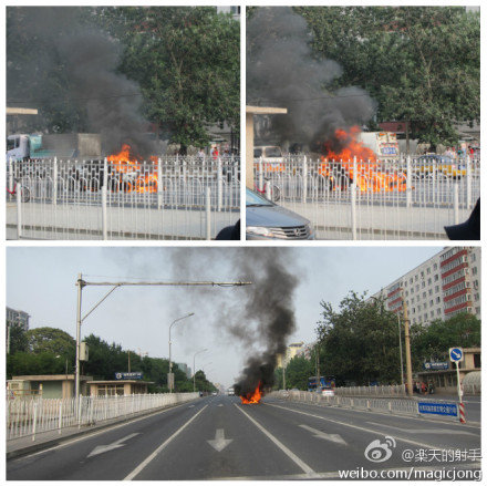 一辆轿车在北京宣武门路口附近自燃(现场图)