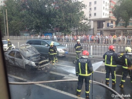 7月21日16:30左右,一辆轿车在北京宣武门路口附近自燃,宣武门东大街东向西方向交通受到影响。