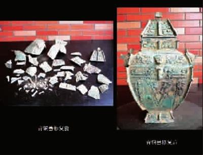 ▲青铜罍修复前后