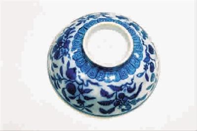 ▲明宣德青花瓜果纹碗修复前后