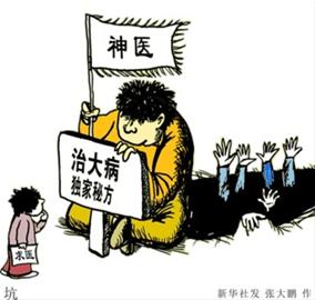 近年来,一个个“神医”“大师”被揭开“画皮”,但总有新人“崛起”,骗倒众生。其中原因究竟何在?云南省卫生监督系统一名不愿透露姓名的官员分析,相比于传统的“江湖骗术”,大师、神医们伪装得更加“道貌岸然”,行骗手段更加“高明”。