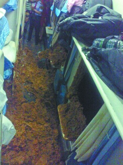 原标题:泥石流冲进火车车厢掩埋乘客