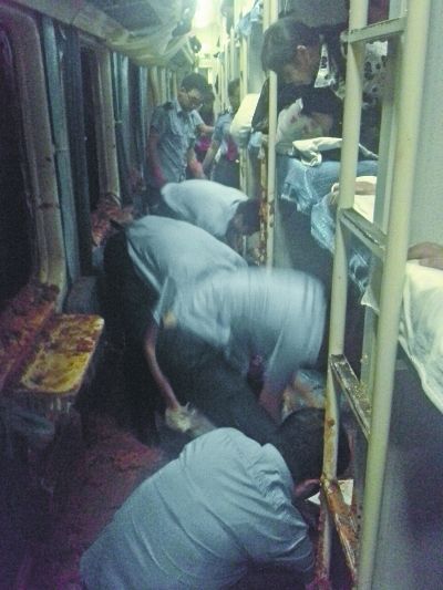 眼前的一幕让徐文胜惊呆了!从事乘警工作快30年了,他是第一次看见这样的场景:三个车窗玻璃被击打得粉碎,过道内堆满了泥土、碎石,有人被泥土埋没,只剩小腿露在外面。