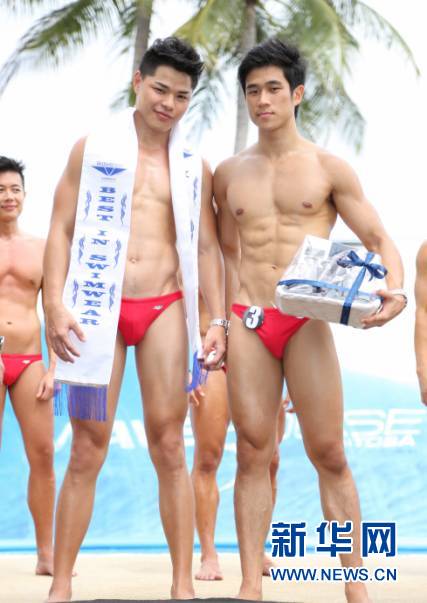 图为获得“最具运动风格”称号的3号选手Francis Nathan(右),获得“最佳泳装着装”称号9号选手Benjamin Koh。