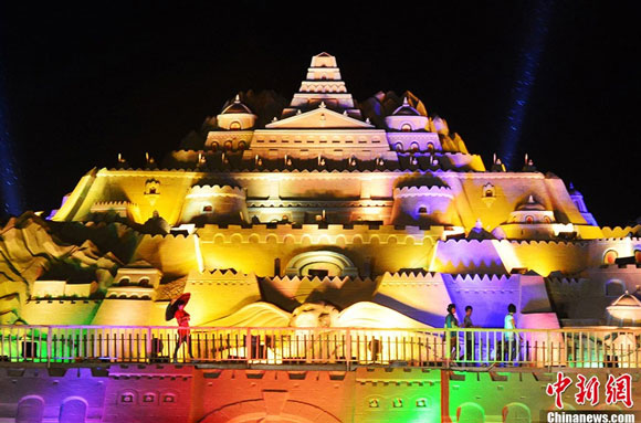 8月20日,福建平潭龙凤头海滨浴场以“梦幻沙世界”为主题的沙雕园内,《指环王》、《阿凡达》、《超凡蜘蛛侠》、《加勒比海盗》等很受年轻人和孩子们喜欢的电影为创作主题的影视沙雕作品集体亮相,沙雕作品采用组合沙雕与单体沙雕相结合,主沙雕为彩雕形式,夜幕下沙雕在各色灯光的映衬下,让游客如同走进梦幻中的世界。张斌 摄