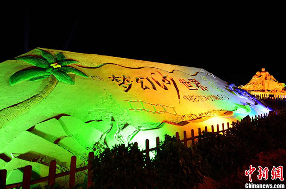 8月20日,福建平潭龙凤头海滨浴场以“梦幻沙世界”为主题的沙雕园内,《指环王》、《阿凡达》、《超凡蜘蛛侠》、《加勒比海盗》等很受年轻人和孩子们喜欢的电影为创作主题的影视沙雕作品集体亮相,沙雕作品采用组合沙雕与单体沙雕相结合,主沙雕为彩雕形式,夜幕下沙雕在各色灯光的映衬下,让游客如同走进梦幻中的世界。张斌 摄