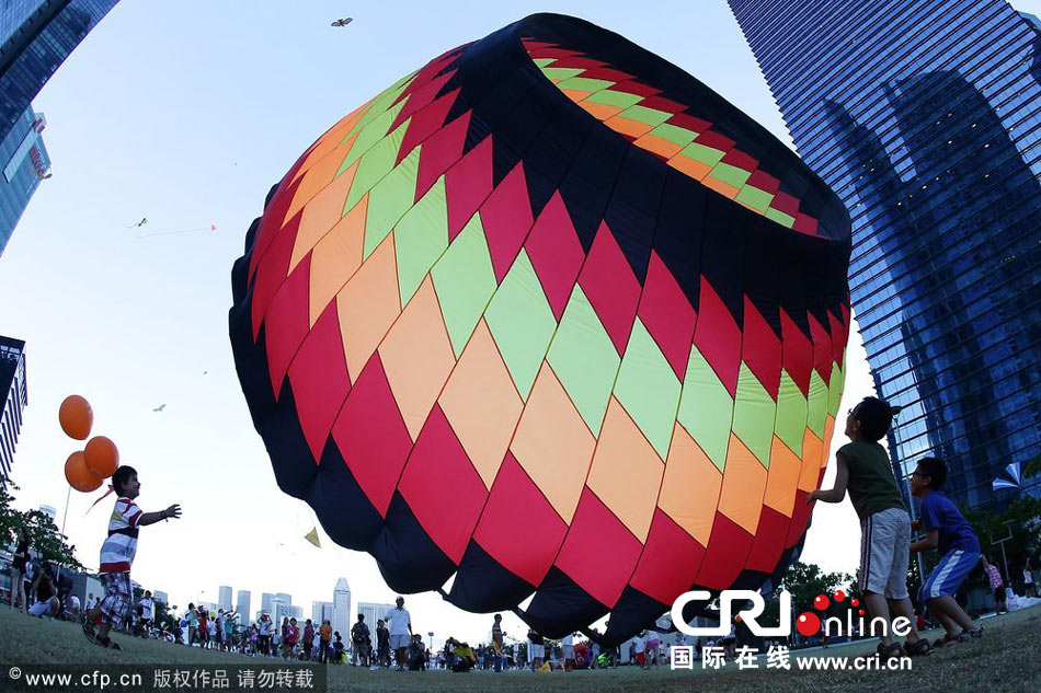 当地时间2013年8月31日,新加坡年度风筝节,各色各样的风筝吸引了孩子们的参与。