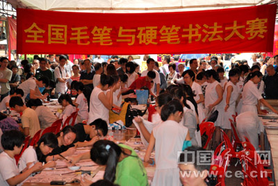 比赛分为两个时间段进行,先是一小时的毛笔书法角逐;然后是一小时的硬笔书法争锋。新加坡财政部兼交通部高级政务部长杨莉明亲自到场助阵,并亲手为214名获奖者颁奖。