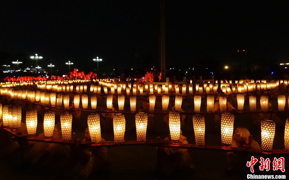 2013年9月18日晚,江西宜春举行“中秋拜月·火龙追月”中秋民俗活动。图为,一条长达400米板凳龙在庆中秋。邹海斌 摄