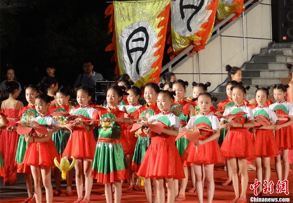 2013年9月18日晚,江西宜春举行“中秋拜月·火龙追月”中秋民俗活动。图为,当地古朴的“中秋拜月”仪式。邹海斌 摄