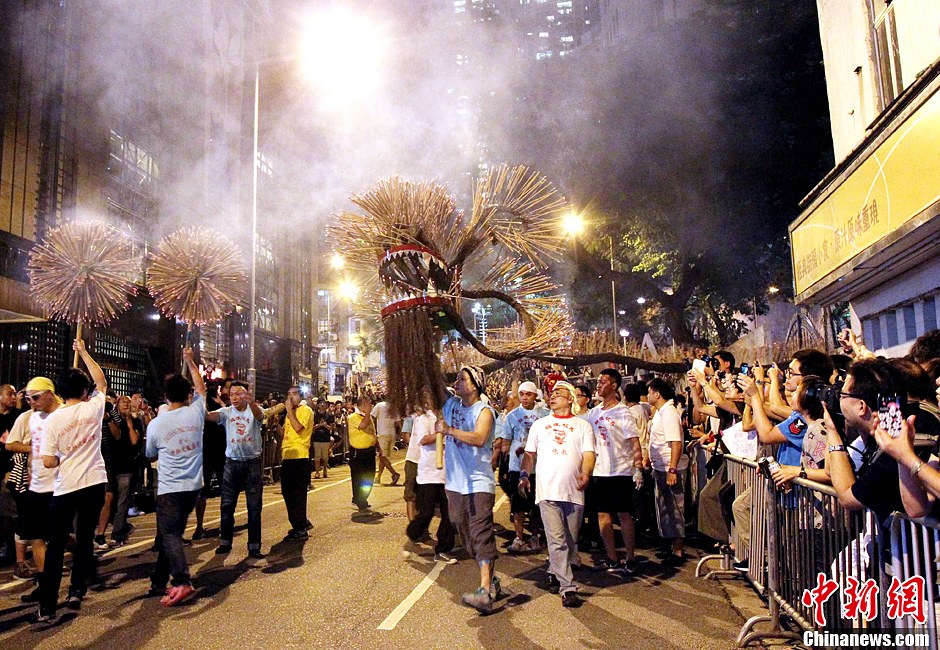 9月18日晚,香港中秋节“舞火龙”在港岛大坑进行,吸引大批市民及外国游客观看。中秋夜更会延伸至维园彩灯会表演。香港大坑舞火龙被列入“国家级非物质文化遗产”。中新社发 洪少葵 摄