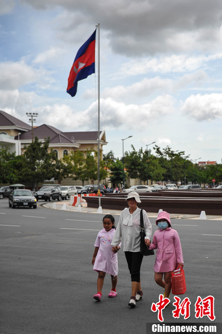 9月22日,柬埔寨金边,当地居民穿过街道。由于柬埔寨反对党——救国党对国会选举结果不满,要求国王西哈莫尼延期召开新一届国会首次会议。此前反对党及其支持者还进行了为期三天的大规模示威活动。中新社发 洪坚鹏 摄