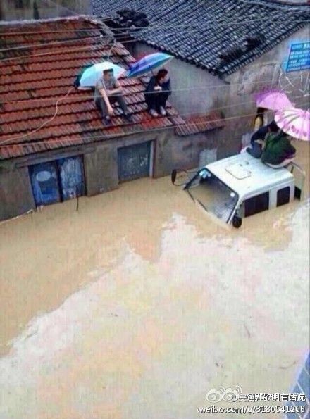 浙江余姚受灾照片 积水差不多快淹过车顶(图)