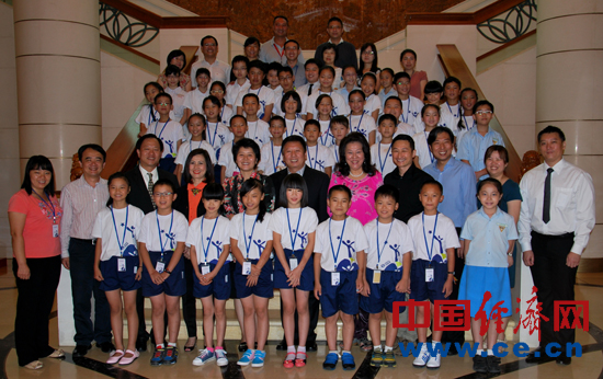 来自中国四川地震灾区和贫困地区的32名小学生,11日来到中国驻新加坡大使馆参观访问,并与使馆工作人员联欢、交流。