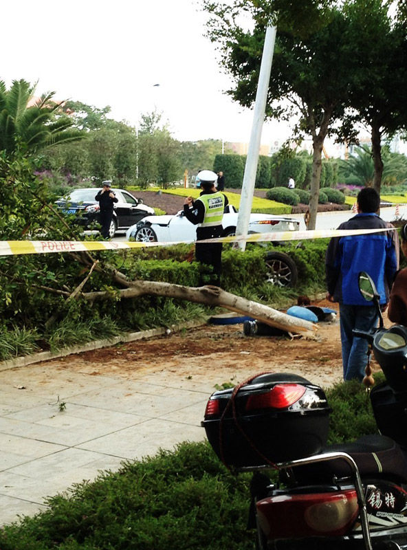 据凤凰网报道,现场可以看到,绿化带中两棵树几乎全被撞断。