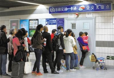 前日中午,动物园公交枢纽退卡网点外,70余人排队等候退卡。新京报记者 黄月 摄