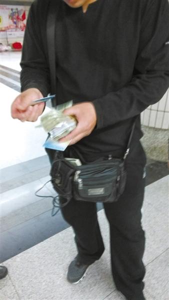 前日,动物园公交枢纽退卡网点外,一“黄牛”正收卡。