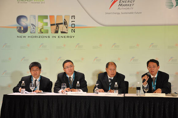 新华网新加坡频道11月2日电(记者 李彦 摄影 符传威)11月1日上午,在2013新加坡国际能源周上,由中国国家能源局、新加坡能源市场管理局和天津大学共同举办的中国低碳城镇发展高端研讨会,在新加坡滨海湾金沙会展中心顺利召开。新加坡能源市场管理局的署长吴国才先生到会向参会嘉宾表示热烈欢迎以及对会议的召开表示祝贺。