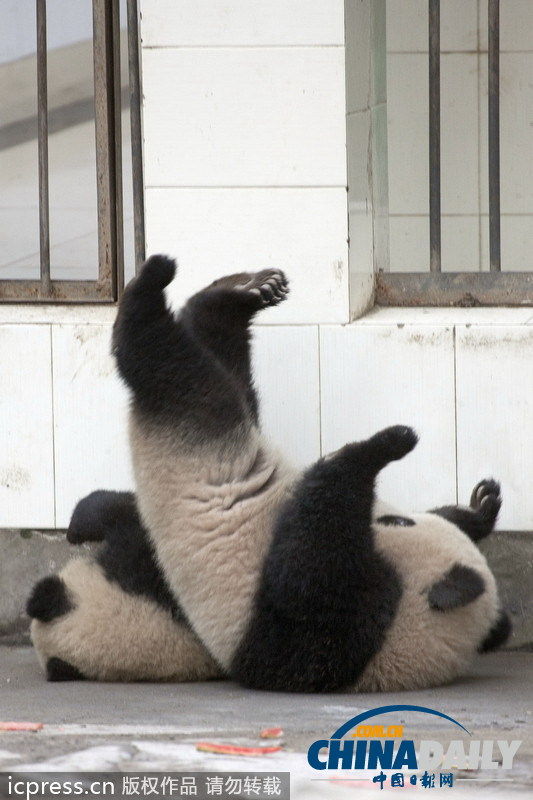 两熊猫欲合作翻墙“越狱” 因体重失败