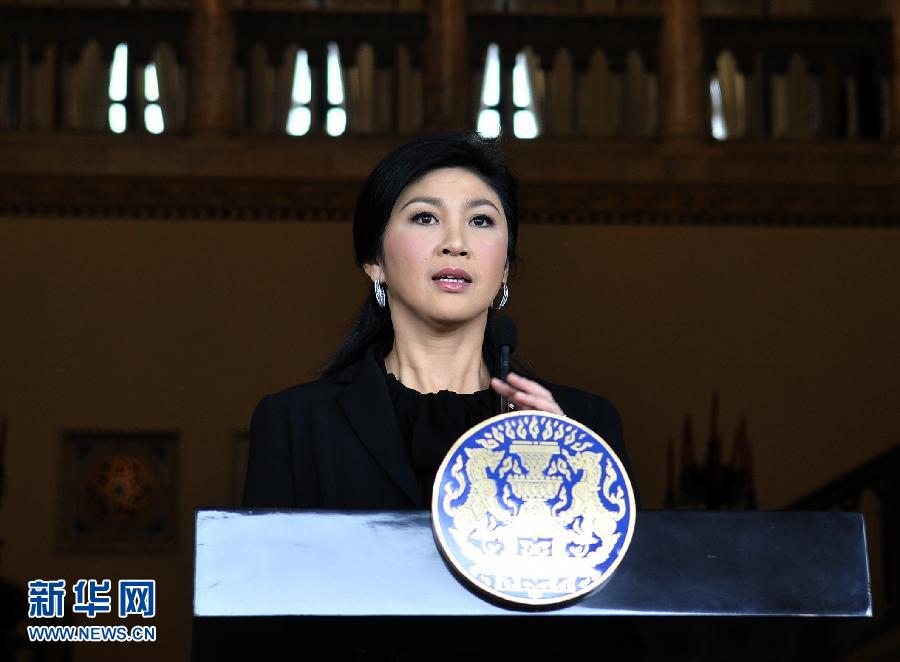 11月7日,泰国总理英拉在曼谷举行新闻发布会。泰国国会下议院7日投票决定撤出正在审理阶段的6份与特赦相关的法案,希望可以借此平息眼前的集会风波。但撤销的提案并不包括目前在泰国引发集会示威的特赦法案草案,这份法案仍将按原计划于11日提交上议院审议。泰国总理英拉同日发表电视讲话,呼吁示威者停止集会。新华社发(拉亨摄)