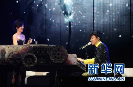 图为孙燕姿与林俊杰首次同台合唱《她说》,引起台下欢声雷动