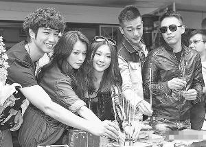 3月18日,徐若瑄(左二)38岁生日前1天,李云峰(右一)出席《72小时莎到你》开镜仪式。