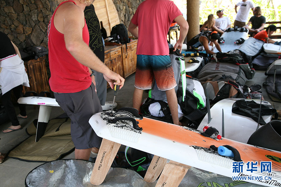 运动员积极备战2013IKA风筝冲浪竞速世界锦标赛 (组图)