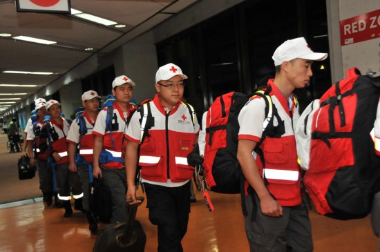 11月20日晚,中国派往菲律宾参与救灾的首支国际救援队抵达菲律宾首都马尼拉尼诺伊·阿基诺机场。 新华网记者谭卫兵摄