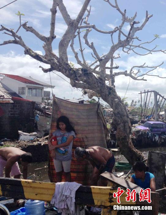 11月29日,菲律宾台风重灾区塔克洛班市一些灾民在路边清洗衣物。11月8日,超强台风“海燕”袭击菲律宾中部地区,塔克洛班市受灾尤为惨重。中新社发 张明 摄