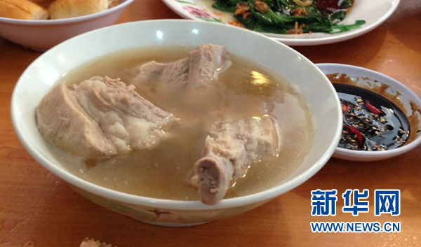肉骨汤煮好后,接下来该泡茶了。泡茶用小茶杯,泡的是那种很浓且微带苦味的普洱。这种茶清油开胃,吃了油腻的肉骨汤后再喝一杯普洱茶,油腻感全无,舒服极了。