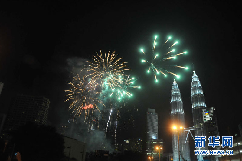 吉隆坡以烟花喷泉迎接新年到来(组图)