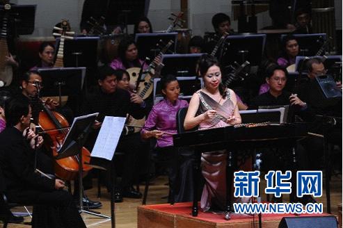 图为新加坡华乐团扬琴首席瞿建青进行扬琴独奏