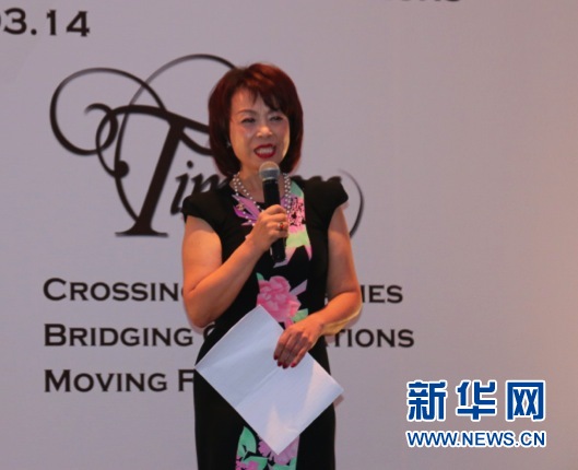 图为中国枫岚事业有限公司董事长、新希望集团董事李巍女士在“永恒,跨时代,跨国界,女性迈向未来”2014年国际三八妇女节庆祝活动暨晚宴发表演讲