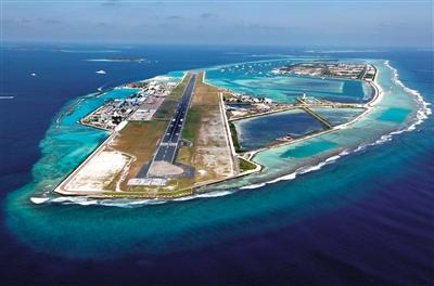 马尔代夫的马累国际机场跑道鸟瞰图