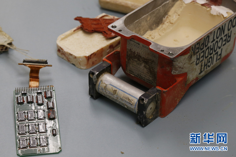 当地时间2014年3月28日,美国华盛顿,美国国家运输安全委员会(NTSB)的专家们带领媒体参观实验室,并向媒体介绍飞机“黑匣子”的秘密。据悉,飞机“黑匣子”又被称为航空飞行记录器,里面装有飞行数据记录器和舱声录音器,如果能顺利找到马航失联客机的“黑匣子”,将有助于了解事情真相和获得相关飞行技术参数。图为分解开的飞行记录器。东方IC版权图片,请勿转载。